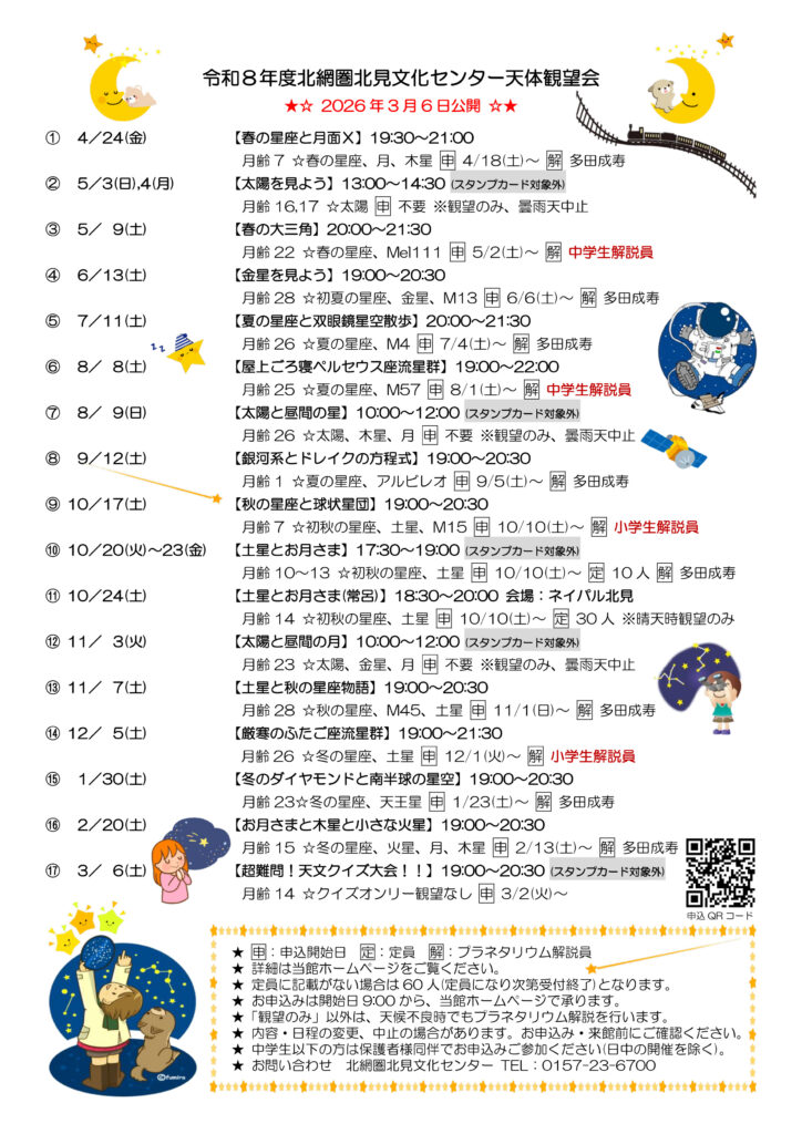 - 2026年1月11日(日)開催予定の『太陽を見よう』は実施しません。ご了承ください。